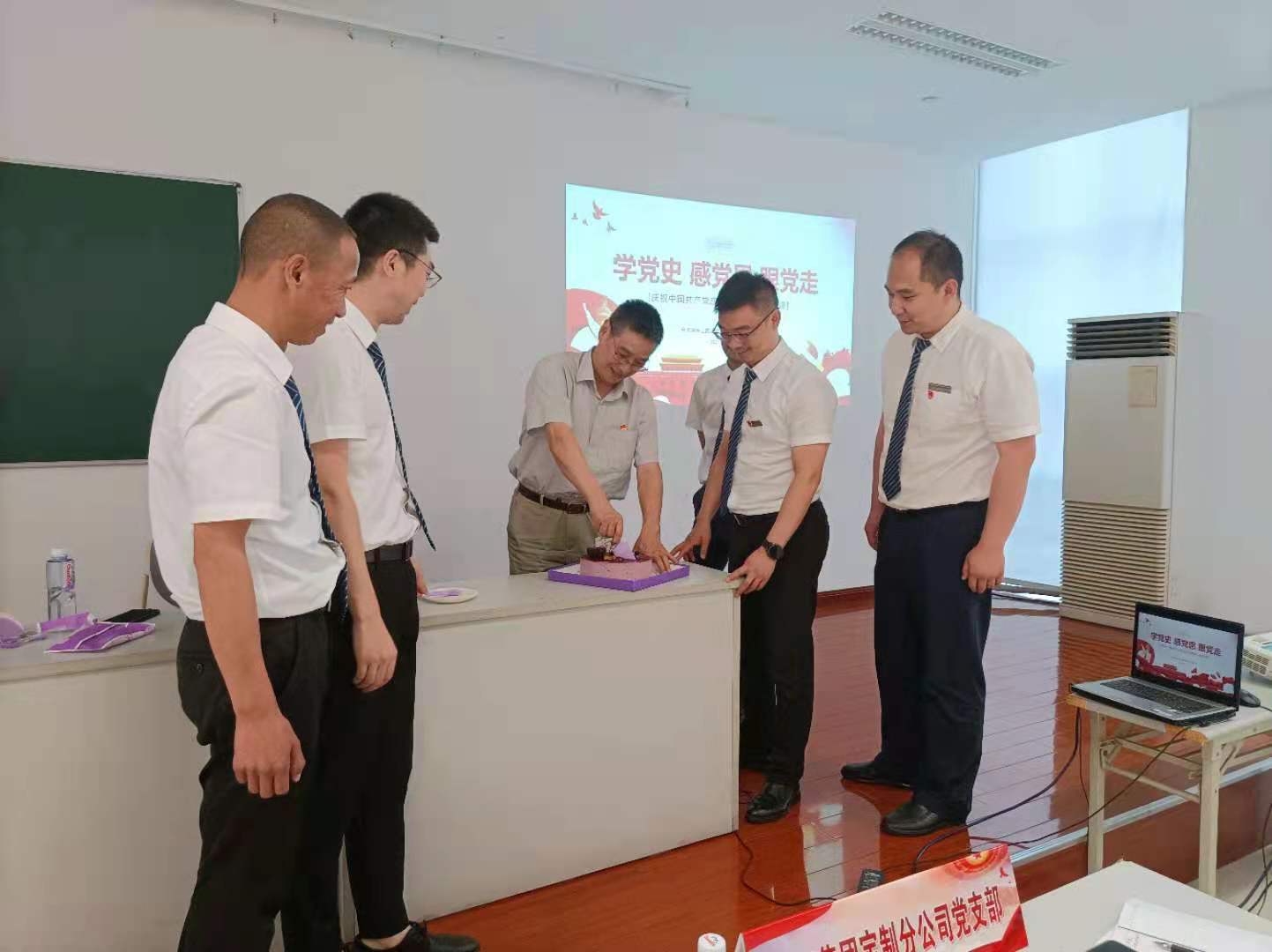 此外,公司特地準(zhǔn)備了生日蛋糕,各位黨員一起“為黨慶生”,向黨的百年華誕獻(xiàn)禮。